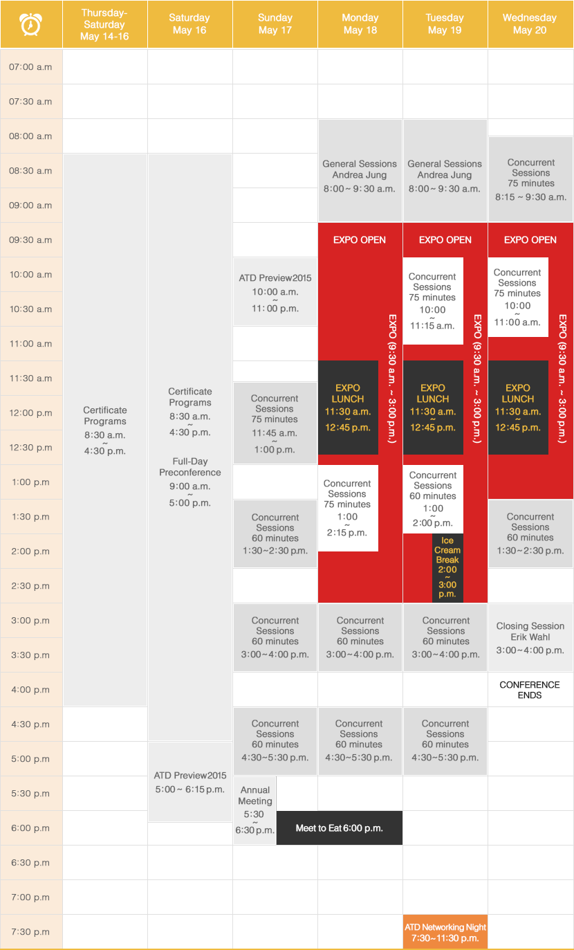 | 10:00 a.m | ATD Preview2015 10:00 a.m. ~ 11:00 p.m. |